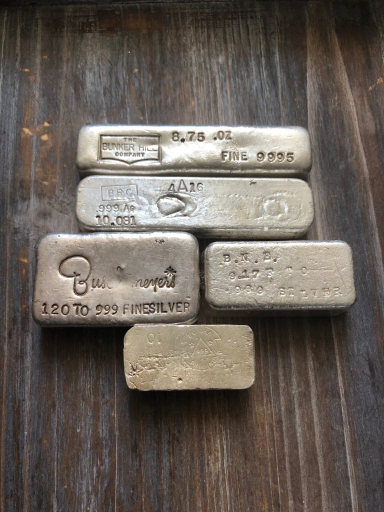 Bunker Hill Company is the highest premium of this bunch. They were a notable refiner out of Idaho between early 60s and early 70s. This example is #80 which is stamped on the side outside edge of the bar. This variety has an estimated <500 examples made. Bunker Hill pieces came in 1 oz up to 100 oz size. More information can be found at allengelhard.com for history and varieties, estimated mintages, etc.