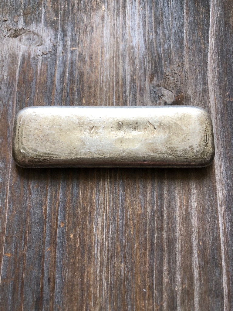 Bitterroot Nugget Exchange is a rarely seen old poure out of Missoula, Montana. Montana had some great refiners, notably Chovanak, who many serious collectors covet. This BNE is a classic old pour style. I’ve come across less than 5 ever like this.