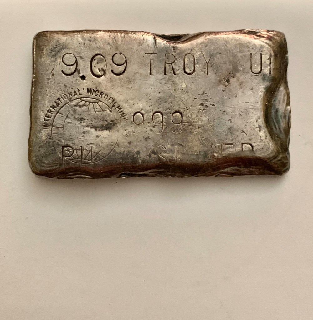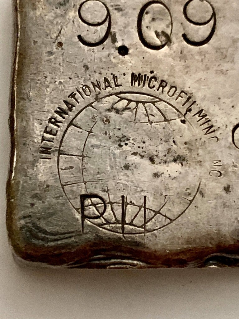 Really cool mold on this ingot.International Microfilming Inc. Operated out of Texas from 1979-1984.