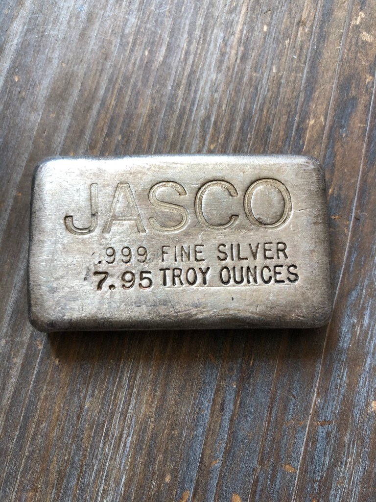 Next up are a few of my favorites. First is a JASCO bar. These are beautifully done and very rare/high premium bars. There is a JASCO silver recovery company out of Houston, TX and I believe this to be the same company, although having a tough time finding time frame when this bar was made. These bars came in 5 to 50 oz size. Just a killer look on these.