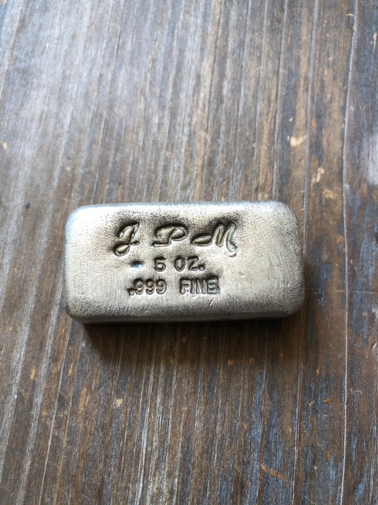 Last up is a mystery, just a letter “J,” but a bar that I love and the only 5 oz I’ve seen. I have a few 1 oz variety of this hallmark, but the 5 is a unicorn. Really well done bar as per the below pic.
