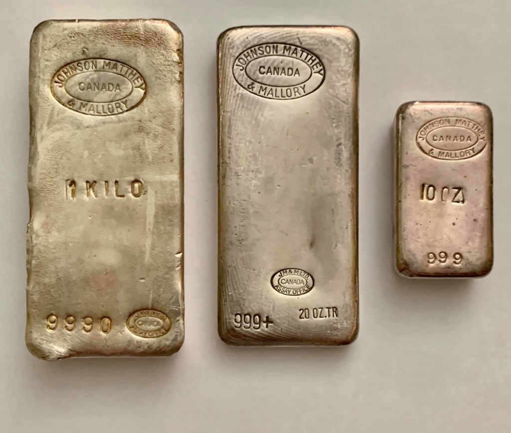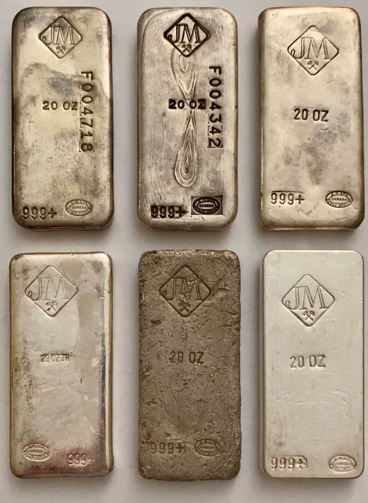 Vintage collectors are often into both JM and Engelhard, as these were the two heavyweights in the industry through the years and produced many beautiful varieties and sizes of gold and silver ingots. Below are some pieces from my collection.