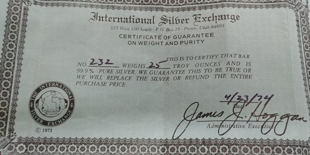 First up, we have The International Silver Exchange. This is the only one I have see like it, and very reminiscent of the 10 oz URI with similar pigtail characteristic. This is a really cool piece. I was able to find an example of an assay paper from this company that I will share below that shows the company operations in Provo, UT circa mid 1970’s.