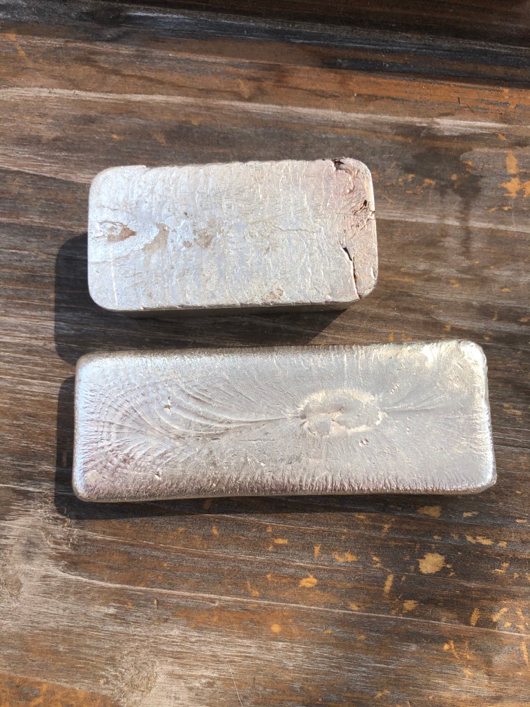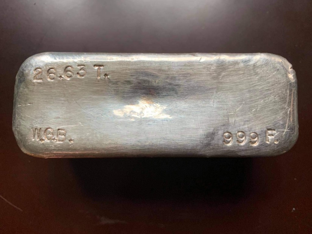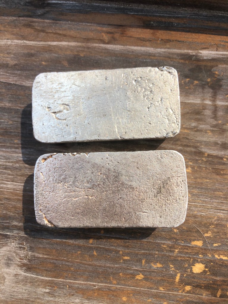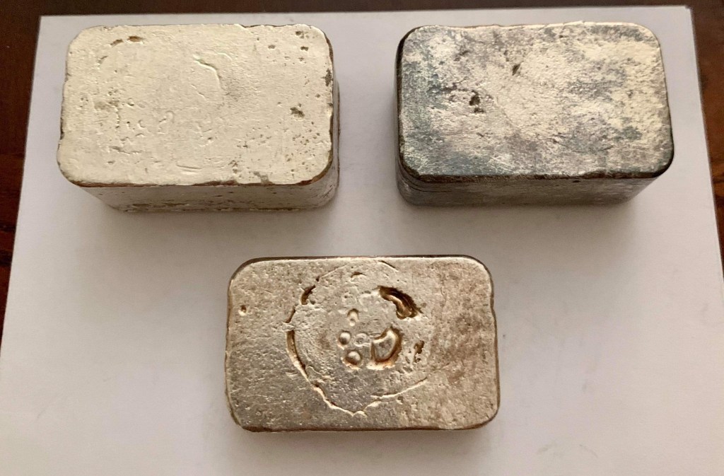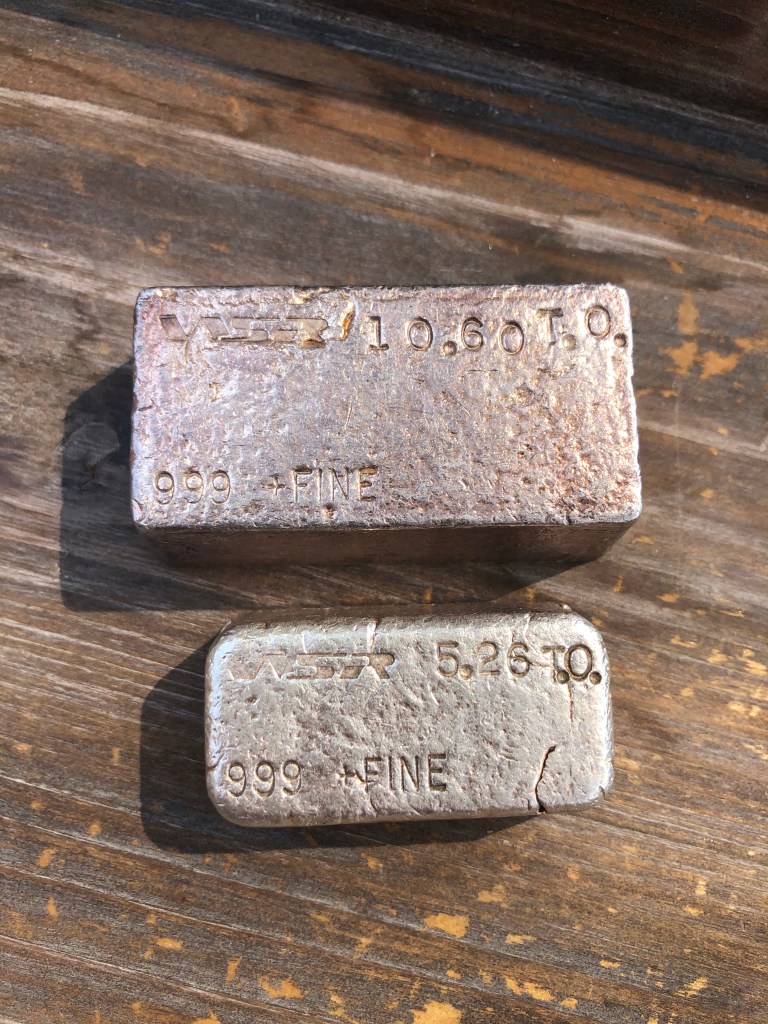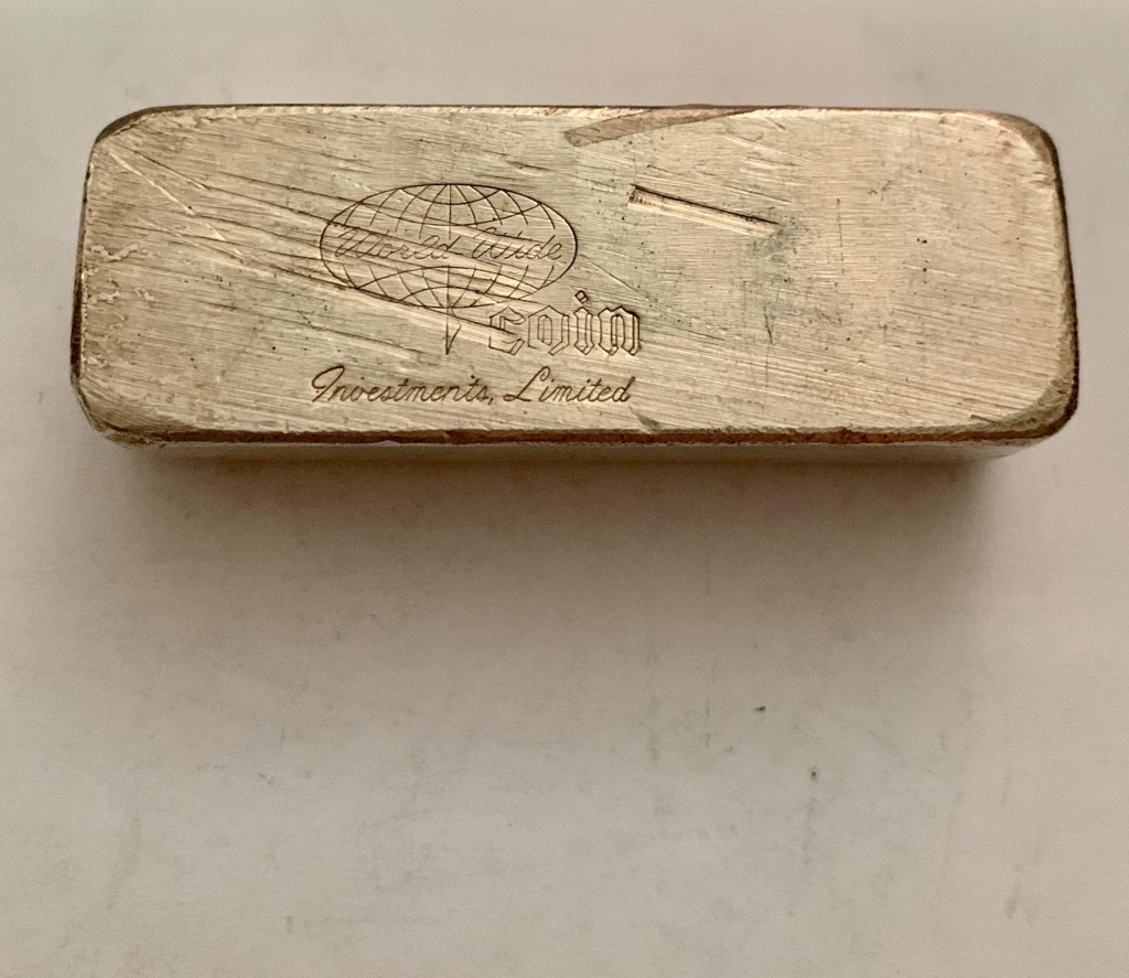 Yardney Electric Corporation was founded in 1944 in New York City. They were among the first companies in the world to successfully produce and commercialize rechargeable silver-zinc and magnesium silver chloride batteries. They were acquired in 1969 by Whittaker Corporation. In 1970, the company moved to Pawcatuck, Connecticut. They went through a series of changes over the years and today are known as Yardney Technical Products. Many of the ingots they did were presentation pieces and have initials of the recipient stamped on the ingot. I have two serializes pieces that are not personalized. I believe these to be much less common and very happy to have them. Each of these weigh 4 troy oz. This is common for all Yardney pieces.
