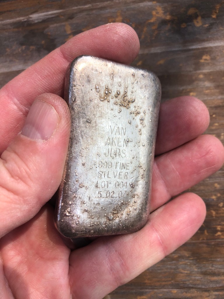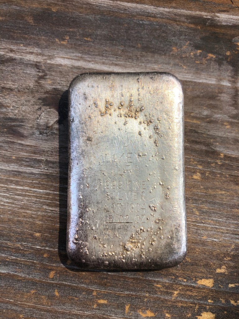 Van Aken ingots are a bit of a mystery, but highly sought after for their unique look. I have not been able to find much information, but there is a Van Aken Jewelers in Ohio. I’m trying to uncover more information and will update the blog accordingly. Several Van Aken bars have been found over the years in 1 oz class and look much like the OIO 1 oz ingots. The 5’s are the true unicorns, however. I’m very fortunate to have one and not aware of any others at this time. Note the similarity again with OIO (very similar fonts and style on this 5 with those OIOs I have seen).