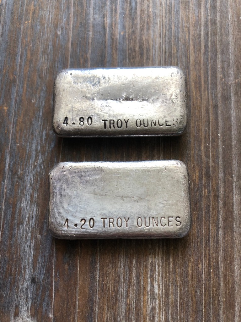 These have such a unique hallmark and style about them. They are in a league of their own.Love the small mold, just right size and thickness on these ingots. Also the stamp above bottom edge is unique to this weight class.
